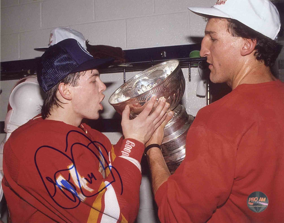 Theo Fleury Signed Calgary Flames 1989 Stanley Cup Celebration 8x10 Photo