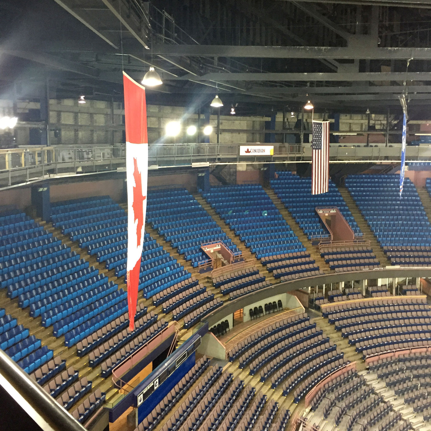 Wood features scuffs and scratches of 42 years of Edmonton Oilers hockey, concerts, and events.