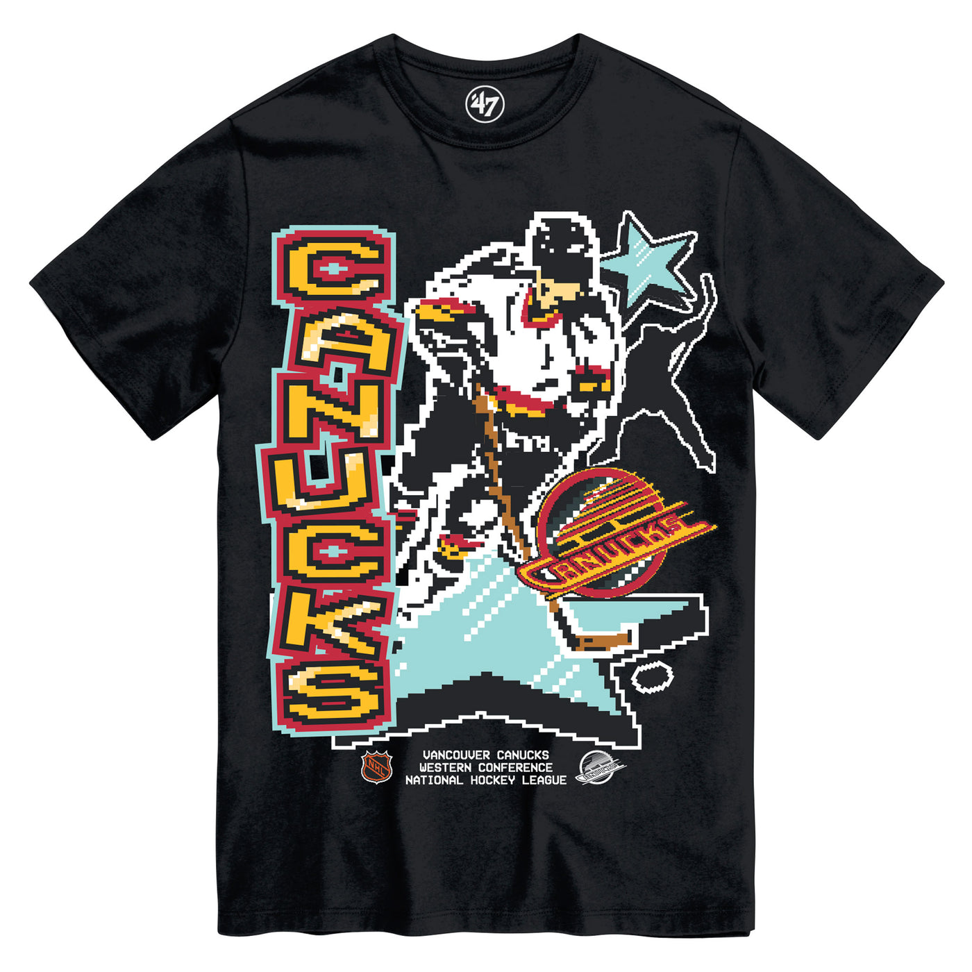 The Vancouver Canucks '47 Slap Shot tee is a lightweight 100% cotton tee features oversized screen-printed 16-bit player graphics and a classic crewneck fit.