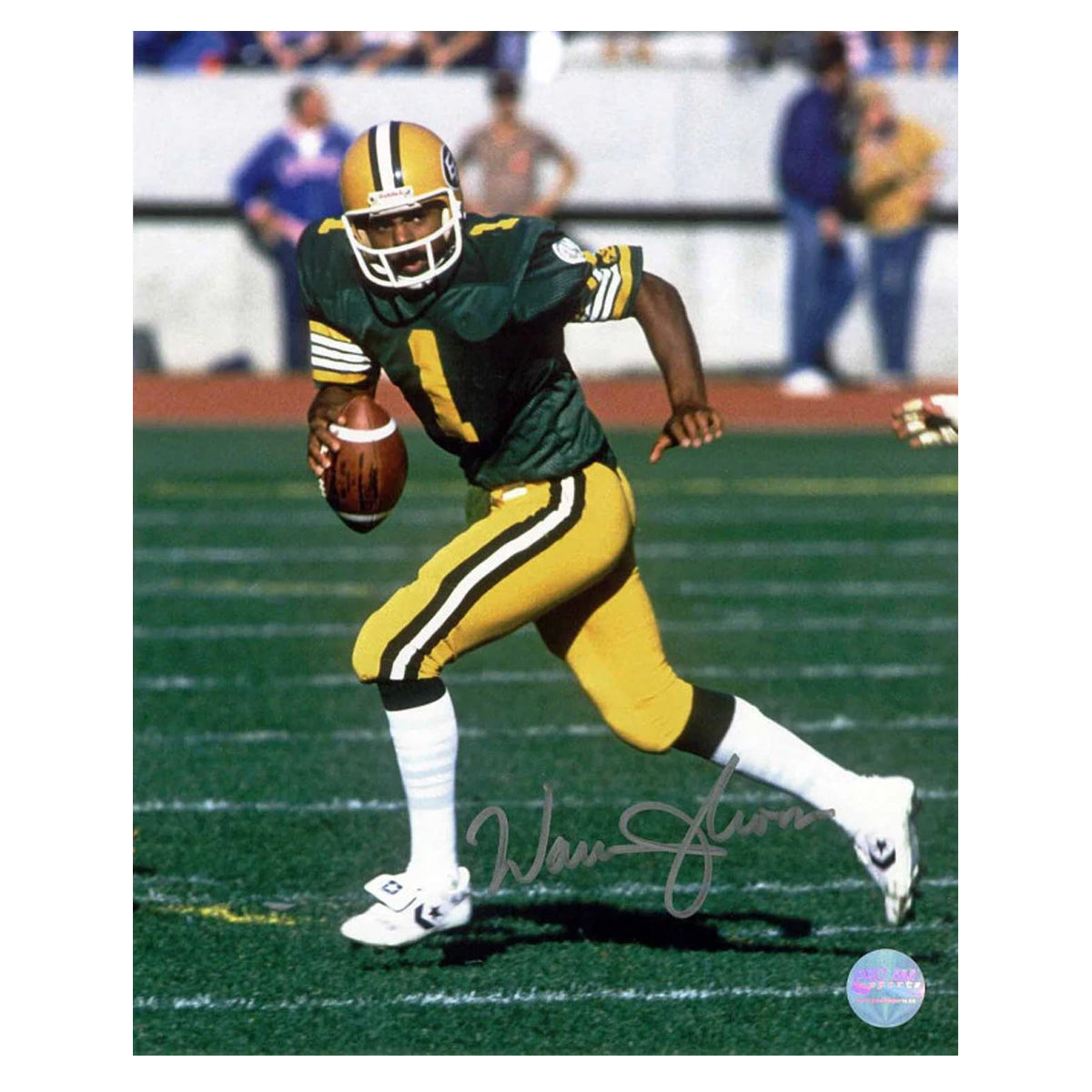 Warren Moon Edmonton Eskimos Green Action "In Flight" autographed 11x14 photograph..