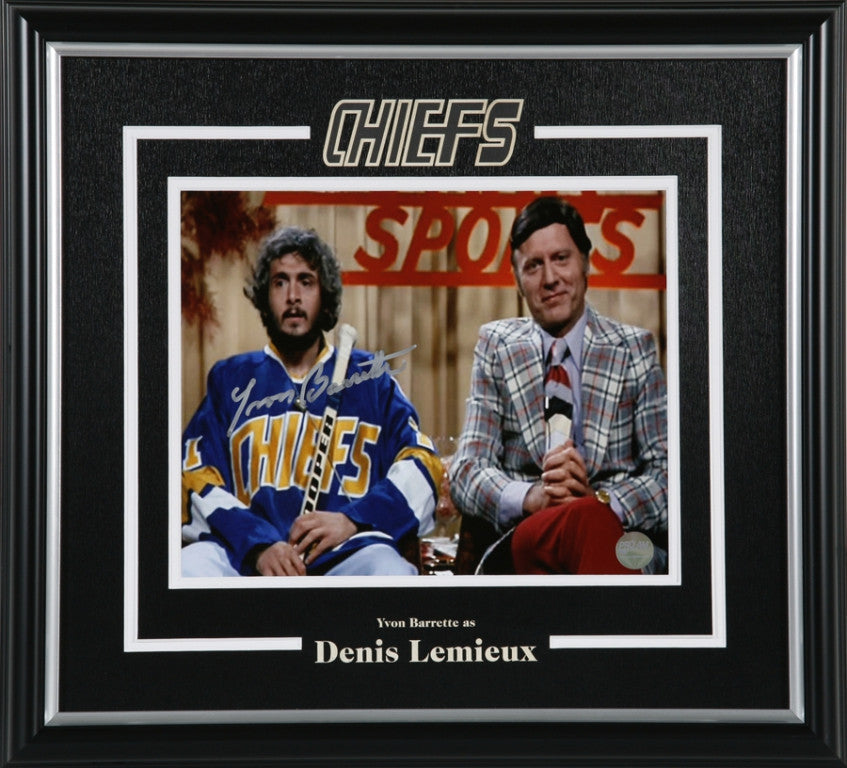 Yvon Barrette as Denis Lemieux Charlestown Chiefs Slap Shot "TV Interview" autographed 8x10 photograph.